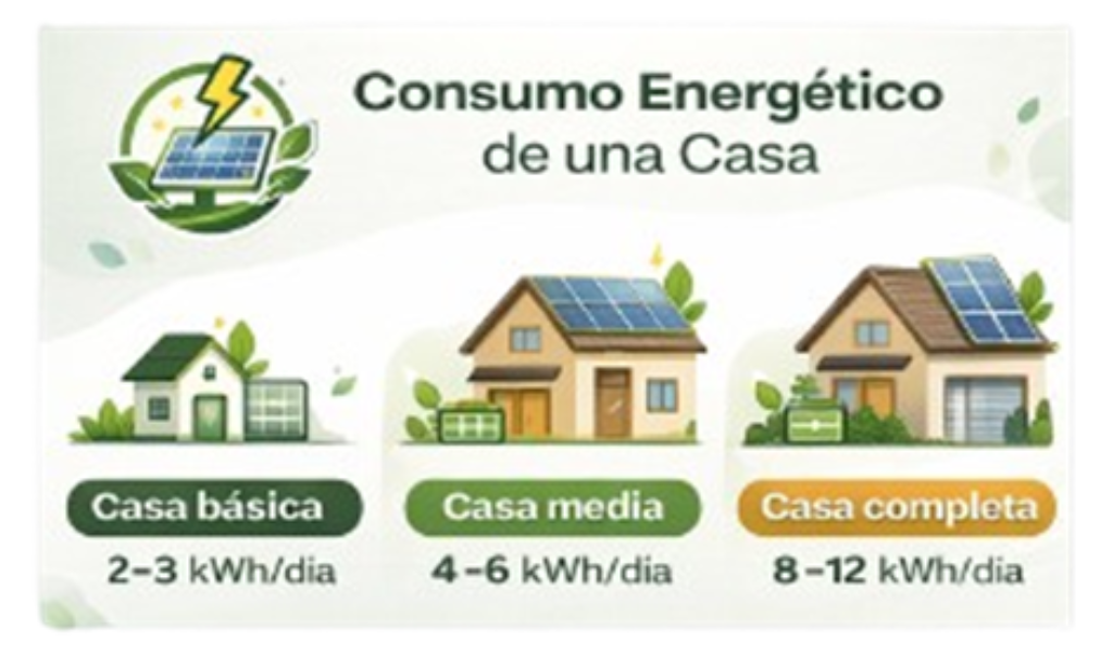 – 8–12 kWh/día → Kit solar avanzado (casa completa)